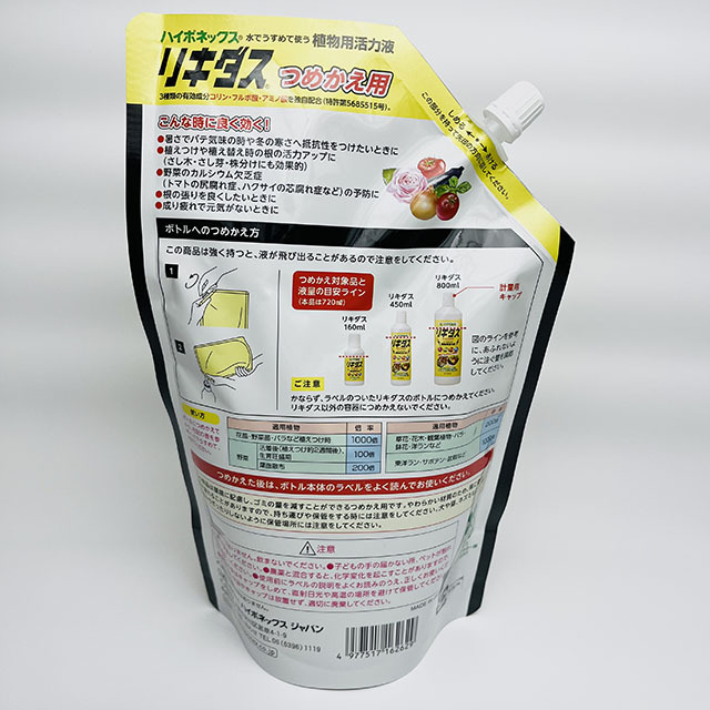 ハイポネックス社の活力剤、詰め替えエコパック、リキダス720mlです。