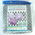 市松模様ですので風通しがよく、木もれ日のようにメリハリのある日かげを作ります。遮光率は45%です。2枚重ねにすると遮光率は67.5%になります。数々の園芸書でもおなじみ。森の木漏れ日に似た半日陰を作り出す、ランなど陰性植物専用の遮光資材です。このシルバー色は熱線もさえぎる遮熱タイプですので、鉢の温度、鉢内の温度上昇も防げます。