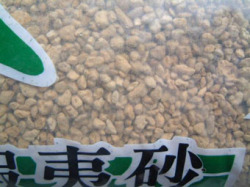 蝦夷砂です。粒の大きさは小粒2.5-4mmです。えぞ砂の特徴は多孔性で、保水、排水、通気性に優れ、微酸性(PH約6.2)無菌ですので各植物の発根、発育が極めて良好です。