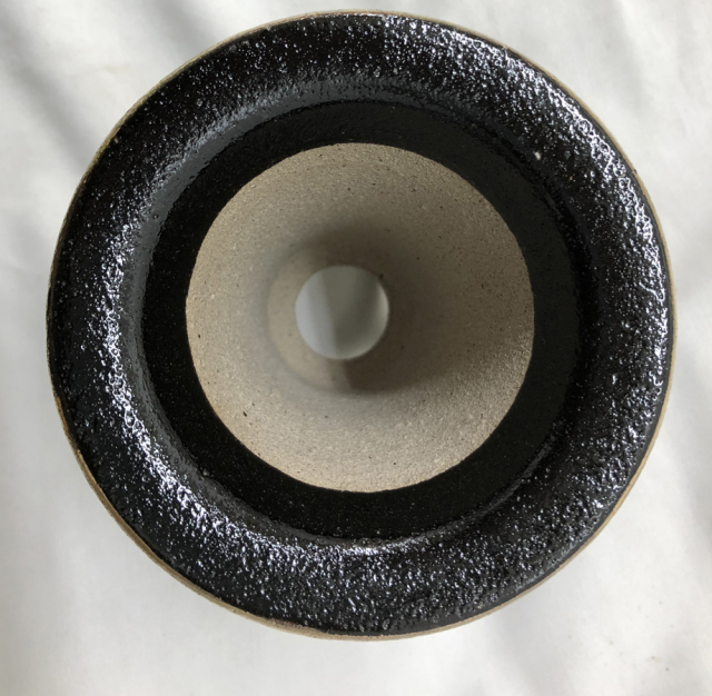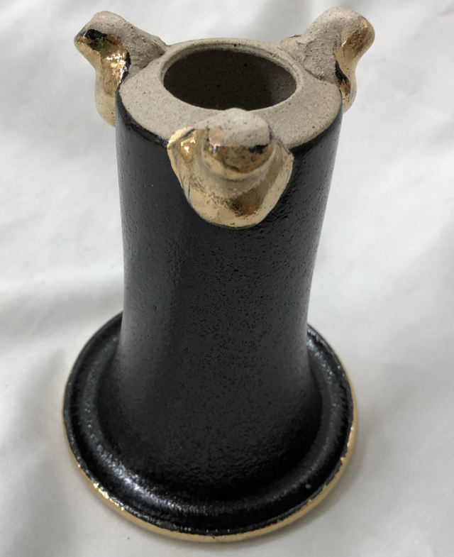 春蘭・寒蘭用の京楽焼の4号鉢の縁金です。サイズは外寸12.5cmx高さ16.5cmです。サナ付です。