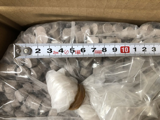 Mサイズの粒の大きさは直径約12mm、高さ8mmの円柱状で重さは約2g