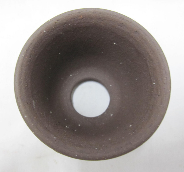 常滑焼の生地焼き砂入りエビネ鉢2.5号です。サイズは8.3cmx高さ7.5cmです。内径は6.5cmで、底穴の大きさは3.1cmです。水捌けのよい、乾きやすい鉢です。