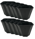 スリット鉢10.5cmの角型の10個セットです。色は黒です。サイズは外径が縦横8.7cm(対角線に測って10.8cm)x高さ8.5cmです。スリット鉢10.5cm(CSM-105)の黒色が入手できないので、代替で如何でしょうか。対応トレーはTO-20です。