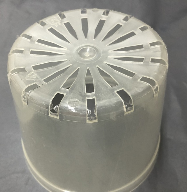 半透明の硬質ポリポットの15cm、100個です。メーカーは5号(15cm)で販売していますが、実際のサイズは直径13.8cm、高さ10.8cm、底面の直径10.6cmなので、4.5号サイズです。現在販売中の13.5cmよりも気持ち大きい位です。写真の通り底穴の所にバリがあります。メーカーに文句を言いましたが、値段が値段なので勘弁してくれと言われました。商品のバリでの交換は出来ませんのでその旨を理解した上でご購入をお願いします。こちらの商品ですが、本来大量に使う生産者向けの商品を10個から100個単位から小分けして販売しております。 そのため、価格重視のメーカー戦略(生産者も安価な価格を好む)のため、金型が劣化しているのに、修復はなかなかしてもらえず、 内側に傷のような感じになっています。金型の修正をメーカーに伝えても、上記のような理由で修復をしてもらえていません。 上記のことをご了承の上、ご購入をお願いします。傷を理由に返品は不可ですが、破損していた場合は補償いたします。