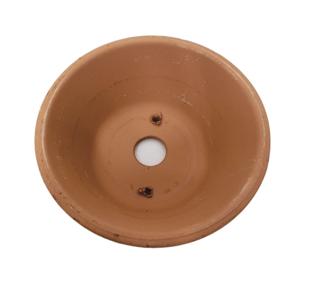 素焼き鉢の浅鉢4.5号です。サイズは外形15.2cm(内径13.3cm)x高さ6.9cmです。常滑の生地を三河で素焼きに焼き上げました。(ダオン鉢の生地です)