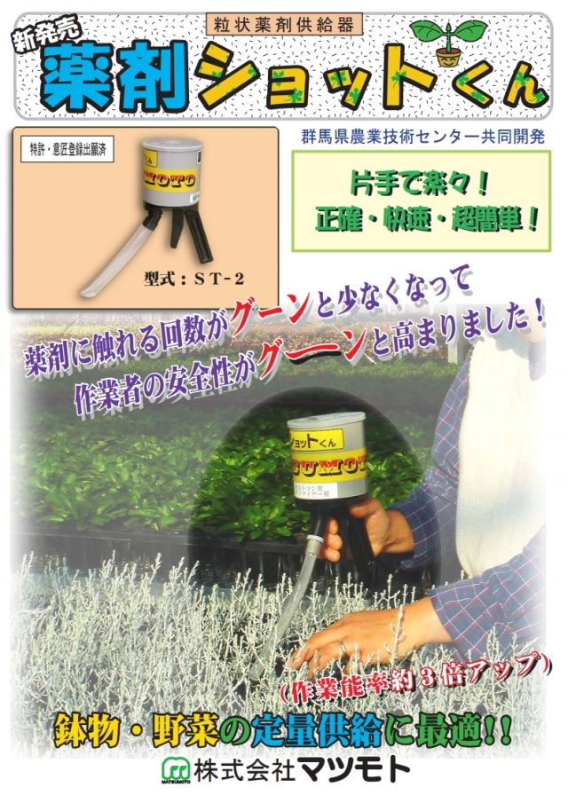粒状薬剤供給器 ショットくん ST-2型 マツモト スライドコマ2個(0.5g用・1g用)付き 送料無料