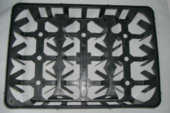 4.5寸用から6寸用のトレーです。 サイズは縦37 横52.5 高さ10.3cmです。仕切りがなく、柔らかいフィンが6枚x6列配置してあるため、さまざまなプラ鉢に適合します。適合サイズは硬質ポリポット4.5号で6個、硬質ポリポット5号で6個、プラ鉢KU-50で6個、プラ鉢KU-60で6個、プラ鉢G-50で6個、プラ鉢G-55で6個、プラ鉢G-60で5個、エビネプラ鉢E-50で6個、エビネプラ鉢E-55で6個、エビネプラ鉢E-60で5個、素焼鉢4.5号で6個、素焼鉢5.0号で6個、素焼鉢6.0号で5個、スリット鉢15cmロングで6個、スリット鉢18cmロングで6個です。